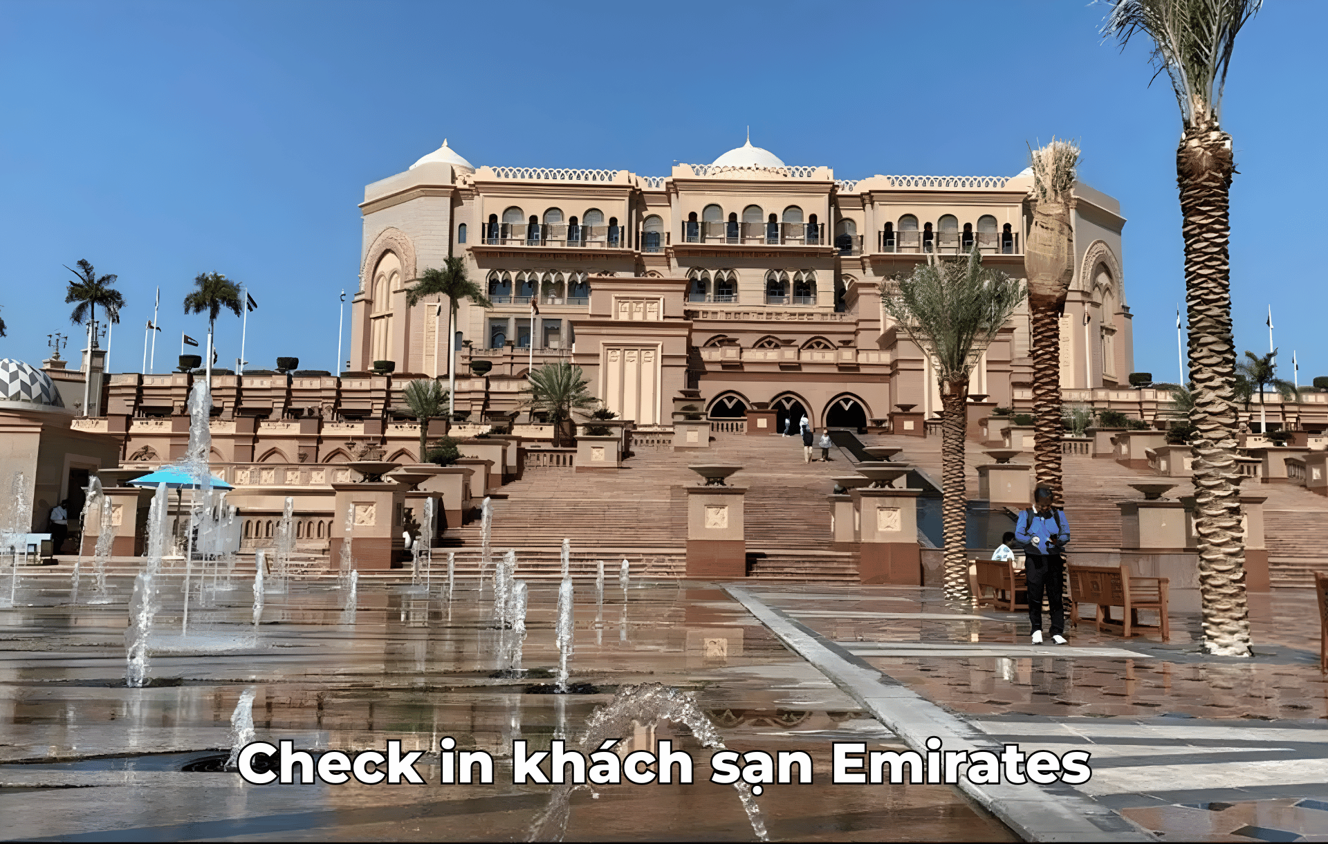 - Dừng chân chụp ảnh bên ngoài Emirates Palace – khách sạn 7 sao xa hoa biểu tượng sang trọng của Abu Dhabi.