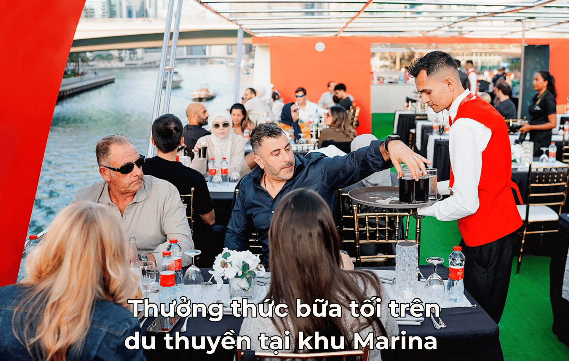 - Thưởng thức bữa tối trên du thuyền tại khu Marina – Quý khách vừa thưởng thức bữa tối set menu, vừa ngắm nhìn Dubai lung linh về đêm với những tòa tháp hiện đại soi bóng xuống bến du thuyền sang trọng. (đã bao gồm vé)