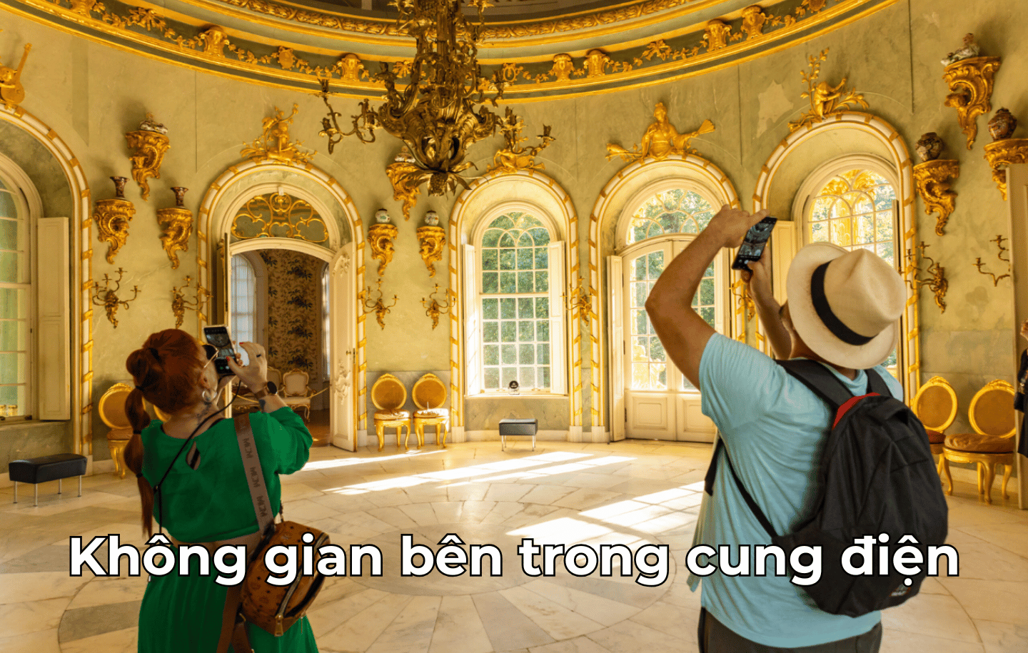 - Nội thất cung điện sang trọng với phòng hòa nhạc và phòng làm việc của nhà vua.