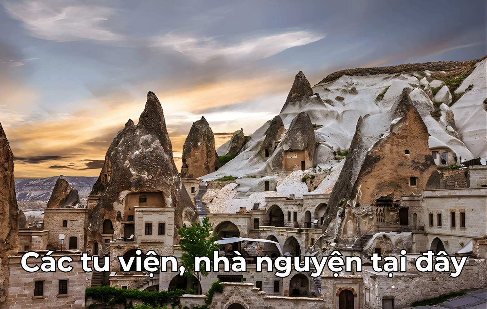 - Tại đây du khách sẽ được chiêm ngưỡng một trong những khung cảnh biểu tượng nhất của Cappadocia: hàng loạt tu viện, nhà thờ, và nhà nguyện được khoét sâu trong các khối đá mềm,…Những công trình này có niên đại từ thế kỷ 10–12 và kéo dài sang thế kỷ 13, thể hiện nét kiến trúc hang đá Trung Cổ đặc sắc.