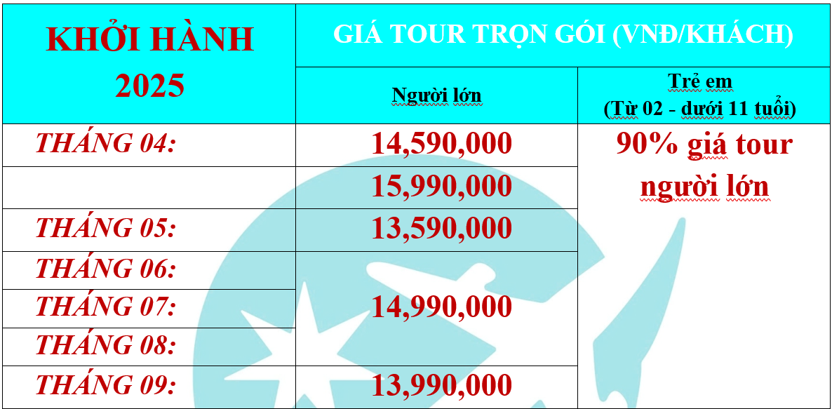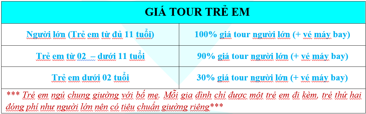 GIÁ TOUR TRỌN GÓI (VNĐ/KHÁCH)