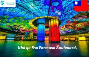- Tàu điện ngầm (MRT): nằm trong top 10 nhà ga đẹp nhất thế giới, nổi tiếng với mái vòng ánh sáng được khảm thủy tinh lớn nhất thế giới. Du khách chụp hình tại nhà ga R10 Formosa Boulevard.
