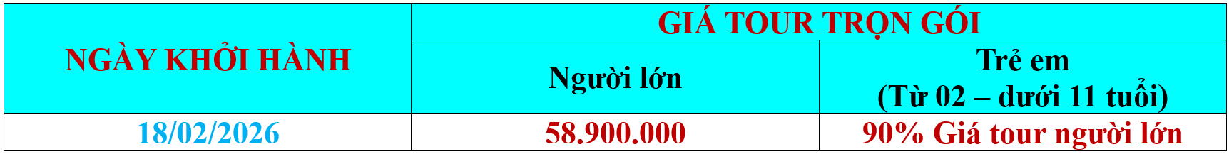 Khởi hành: 18/02/2026 (Mùng 2 tết)