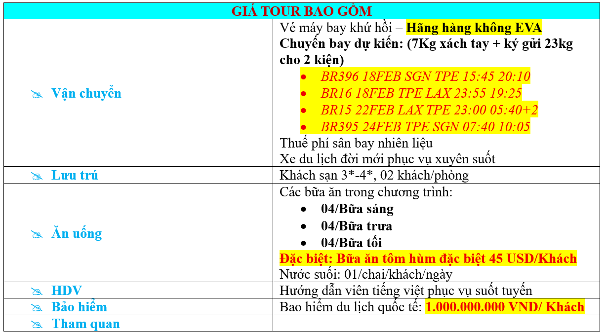 GIÁ TOUR BAO GỒM