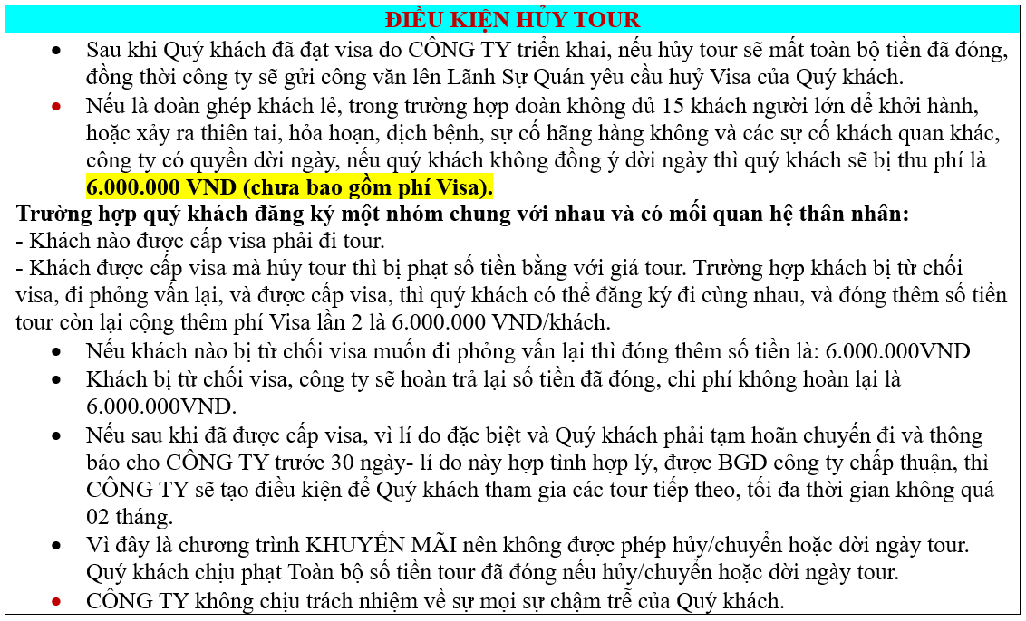 ĐIỀU KIỆN HỦY TOUR