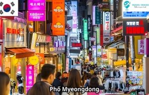 ● Phố Myeongdong: Du khách tự do mua sắm và thưởng thức các món ăn đường phố hấp dẫn: Bánh gạo cay, gà xiên nướng, chả cá,…