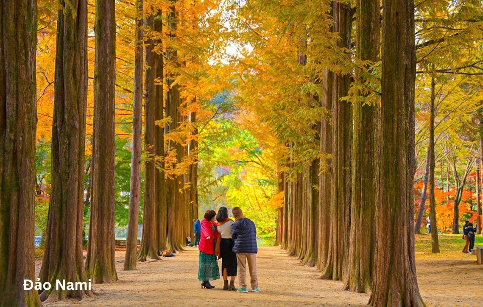 - Đảo Nami: Nổi tiếng với những bản màu sắc riêng theo từng mùa: Mùa thu rực rỡ ánh vàng đỏ của tán cây phong và rừng ngân hạnh; Mùa hè có cây cối mướt xanh; Mùa đông huyền ảo với tuyết phủ trắng xóa; Mùa xuân hàng trăm cây hoa anh đào nhuộm sắc hồng rực rỡ.