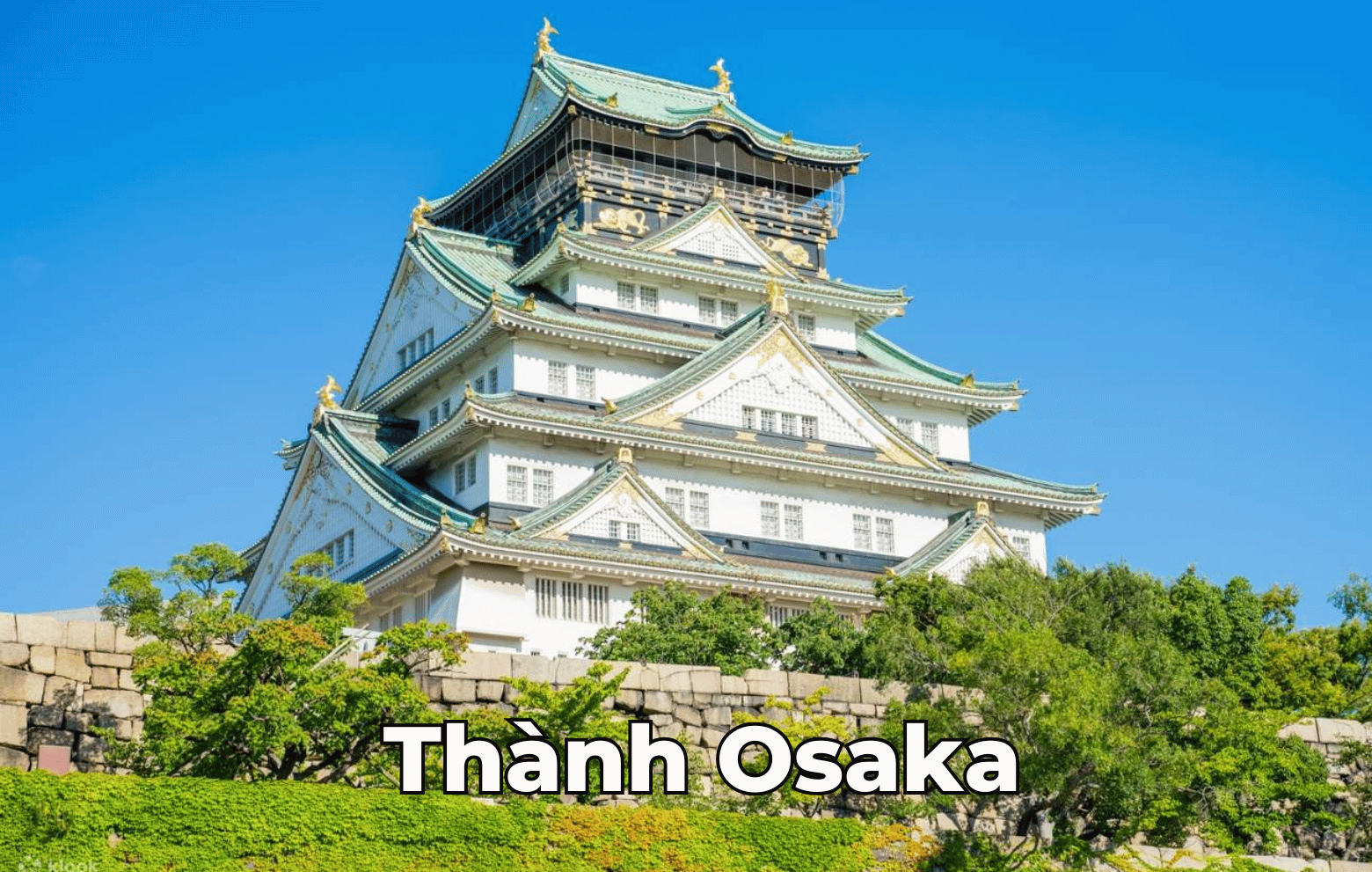- Thành Osaka: biểu tượng lịch sử nổi tiếng của thành phố Osaka, gắn liền với thời kỳ chiến quốc Nhật Bản. Công trình gây ấn tượng với kiến trúc thành quách cổ kính, tường đá và hào nước bao quanh. (Chụp ảnh bên ngoài)