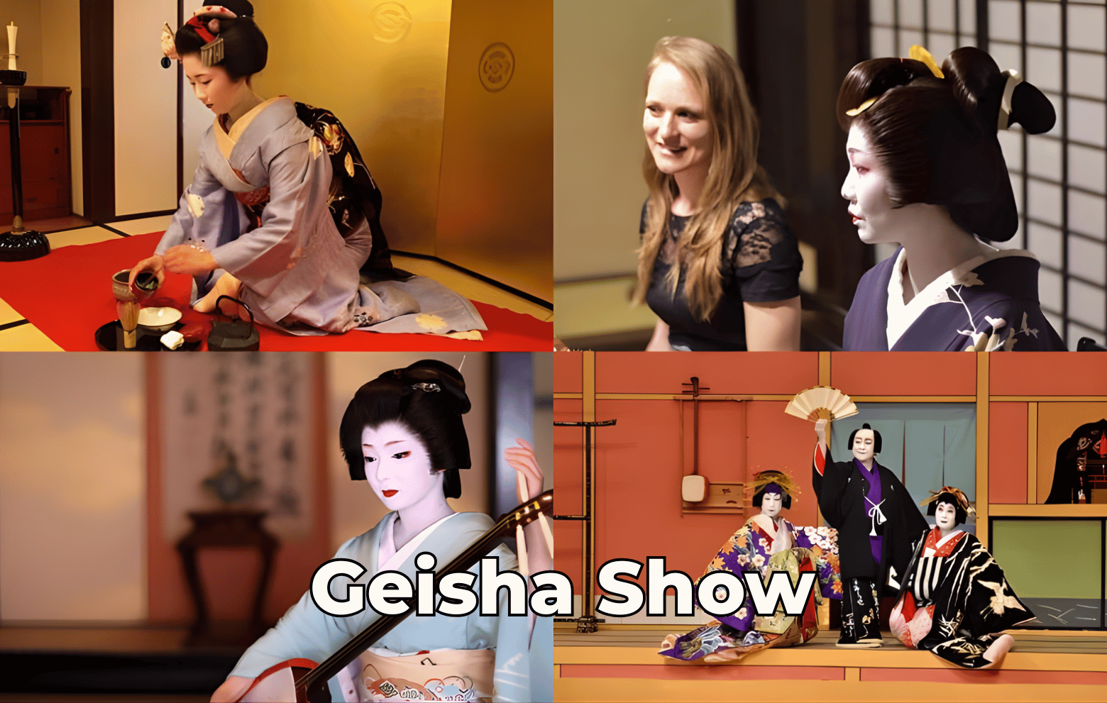 Trưa: dùng cơm trưa tại nhà hàng, thưởng thức show nghệ thuật biểu diễn truyền thống “Geisha Show” – Cảm nhận nét văn hóa nghệ thuật truyền thống Nhật Bản thông qua các điệu “Múa truyền thống Kimono và quạt”, “Biểu diễn đàn Shasimen”, “Nghi thức trà đạo”