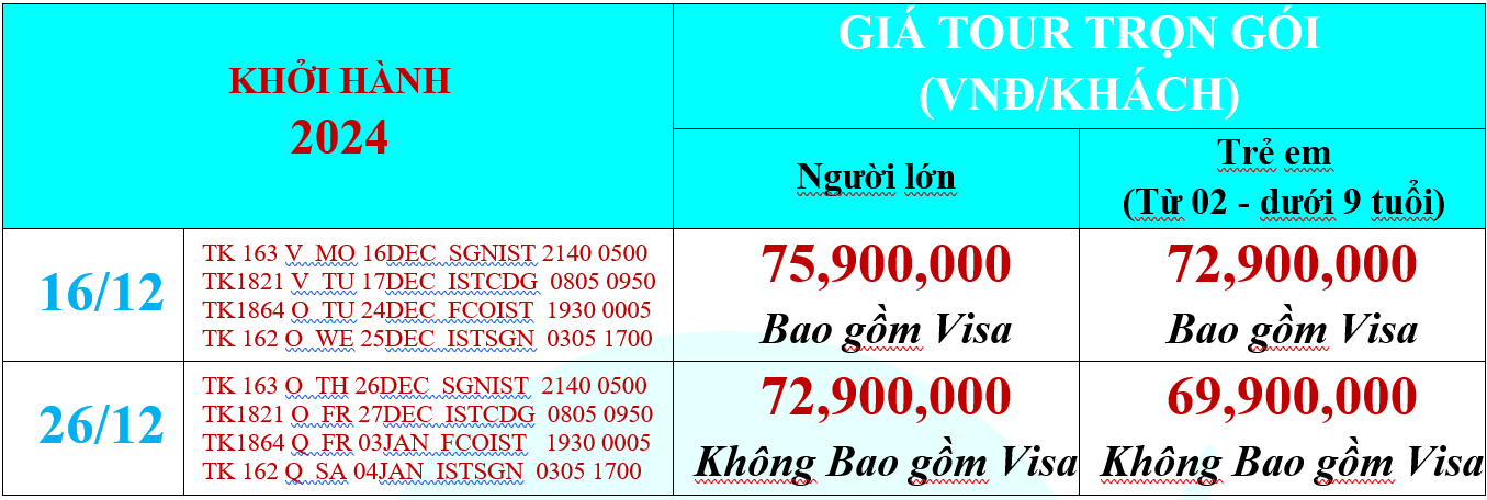 GIÁ TOUR TRỌN GÓI