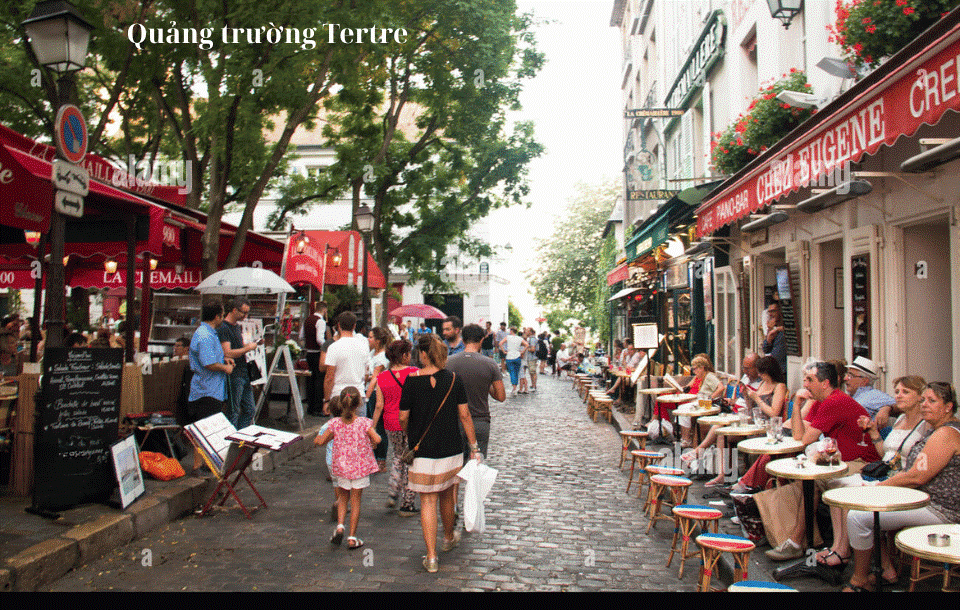 ● Quảng trường Tertre: Du khách có thể ngồi vẽ chân dung ngay tại chỗ như một kỷ niệm đặc biệt ở Paris hoặc thưởng thức 1 tách cà phê, nhìn ngắm dòng người ở qua lại trong không gian cổ kính. (chi phí tự túc)